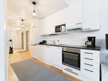 Jääkaappipakastin, erillisuuni, liesitaso Keraaminen taso, liesituuletin, astianpesukone Uusittu 1/2023, kaapistot.
