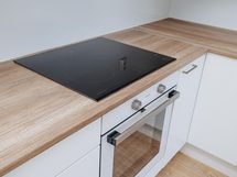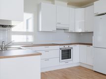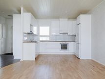 Jääkaappipakastin, erillisuuni, induktioliesi, mikroaaltouuni, astianpesukone, kiinteät valaisimet.