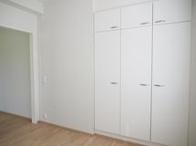 Säilytystilaakaan ei tästä kodista puutu, sillä eteisessä ja makuuhuoneessa on tilavat kaapistot. Pesuhuoneessa on myös paikka pesutornille sekä kaappitilaa.