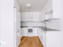 - Jääkaappi/pakastin, keraaminen liesi, uuni, liesikupu/-tuuletin, astianpesukone, kaapistot.