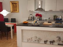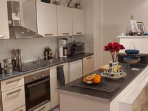 - jääkaappi, pakastin, uuni, keraaminen liesi, liesituuletin, astianpesukone