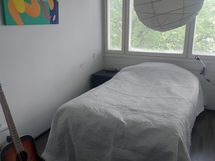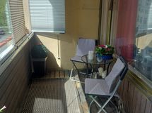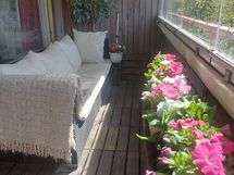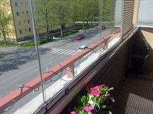 - Lasitettu koko huoneiston levyinen parveke länteen