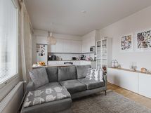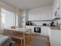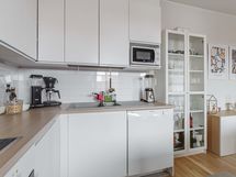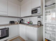 - Jääkaappipakastin, erillisuuni, keraaminen liesi, liesituuletin, astianpesukone, kaapistot, kiinteät valaisimet.