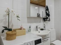 - Sauna, sähkökiuas, kylpyhuone, erillinen wc, suihku, suihkuseinä, peilikaappi, allaskaappi, pesukoneliitäntä, lattialämmitys, kiinteät valaisimet.