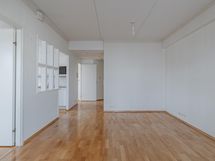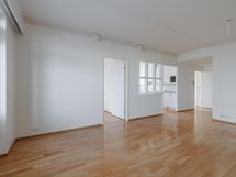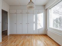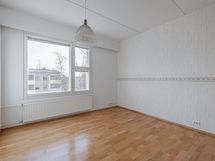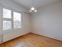 Keittiö: parketti/maali. Olohuone: parketti/tapetti. Makuuhuone 1: Parketti/maali/tapetti. Makuuhuone 2: Parketti/tapetti. Sauna: laatta/paneli. Kylpyhuone: laatta/laatta. Eteinen: parketti/maali.