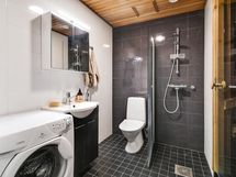 Suihku, Pesukoneliitäntä, Mukavuuslattialämmitys, Tilaa pesukoneelle, Käsisuihku, Kaapisto, Allas, Suihkuseinä, Peilikaappi