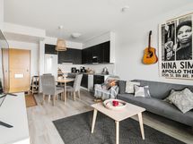 Saunallinen 5/8 kerroksen hyväpohjainen ja raikassävyinen asunto. Iso lasitettu parveke avattavin lasituksin länteen suuntautuen. Keittiö / olohuone avointa tilaa helposti sisustettavissa. Makuuhuoneessa tilaa isommallekin sängylle sekä tilava liukuovikaapisto. Yhtiön pääurakoitsijana on toiminut Peab ja rakennus sijaitsee omalla tontilla. Yhtiön maksuvalmius on hyvä. Yhtiössä on DNA 50M laajakaista. Pysäköinnistä vastaa erillinen pysäköintiyhtiö Kiinteistö Oy Itikanmäen Parkki, josta vapaita autopaikkoja voi tiedustella. Huoneisto myydään vuokrattuna 640 €/kk + käyttökulut.