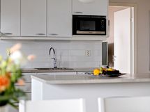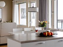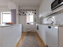 - Liesi: keraaminen, erillisuuni. Työtasot: laminaatti. Kylmäsäilytys: jääkaappi, pakastin. Varustus: liesituuletin, astianpesukone.