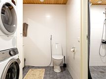 - Pesutilojen kuvaus: Kylpyhuoneessa kaksi sadesuihkua. Varustus: lattialämmitys, suihku. Erillisen WC:n kuvaus: Toinen erillinen wc eteisen vieressä ja toinen erillis-wc kodinhoitotilan kanssa samassa tilassa. Varustus: lattiakaivo, bidee-suihku.