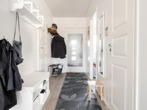 Keittiö: Vinyyli / maali. Olohuone: Vinyyli / maali+tapetti. Makuuhuone 1: Vinyyli / maali+tapetti. Sauna: Muovimatto/ paneeli. Kylpyhuone: Muovimatto / laatta.