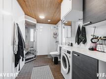 Varustus: suihkuseinä, pesukoneliitäntä, lattialämmitys, wc-istuin, suihku, peilikaappi.