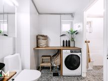 - Kylpyhuone, suihku, lattialämmitys, pesukoneliitäntä, kiinteät valaisimet, peilikaappi, wc-istuin. Pesuhuone remontoitu täysin vuonna 2022.