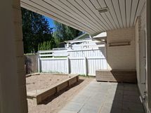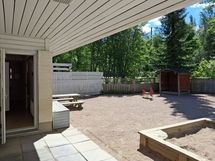 Takapihan terassi ja piha-alue etelä-länsi suuntaan (ilta-aurinkoon) Lounas