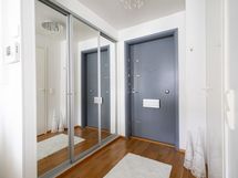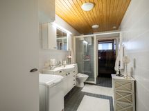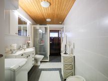 - Varustus: suihkuseinä, pesukoneliitäntä, lattialämmitys, wc-istuin, suihku, peilikaappi, kylpyhuonekaapisto.