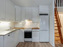 - Jääkaappipakastin v. 2020, keraaminen liesi v. 2020, liesituuletin, astianpesukone v. 2022, kaapistot, kiinteät valaisimet.