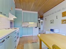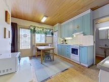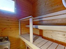 Valoisa olohuone ja keittiö muodostavat yhtenäisen kokonaisuuden, josta on käynti kaakkoon avautuvalle terassille ja omalle pihalle. Makuuhuoneista toisessa on tilava vaatehuone ja toisessa kaapistot. Saunassa on sähkökiuas ja ikkuna, joka tuo luonnonvaloa sekä mahdollistaa tuuletuksen.