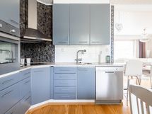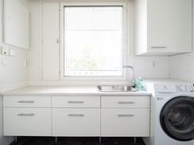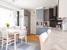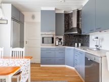 - Jääkaappipakastin, erillisuuni Kiertoilma + grilli, keraaminen liesi, liesituuletin, leivinuuni, astianpesukone, kaapistot, kiinteät valaisimet, pöytätasojen materiaali Laminaattitasot.