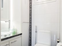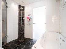 - Sauna, puukiuas, kylpyhuone, erillinen wc, suihku, peilit, kaapit, allaskaappi, pesukoneliitäntä, kiinteät valaisimet. Amme , Pilkkova WC kylpyhuoneessa . Sähkökiukaan kytkentämahdollisuus valmiina saunassa.