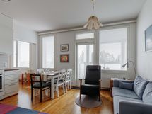 - Jääkaappipakastin, keraaminen liesi, liesituuletin, astianpesukone, kiinteät valaisimet.