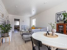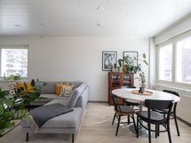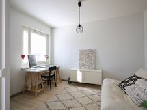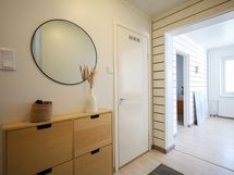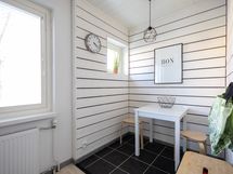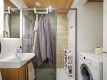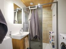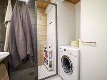 - Varustus: suihkuseinä, pesukoneliitäntä, lattialämmitys, wc-istuin, suihku.