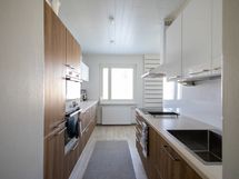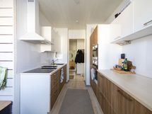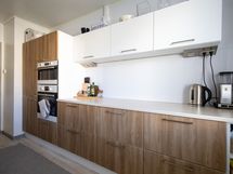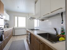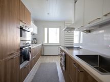 - Liesi: induktio, erillisuuni. Työtasot: laminaatti. Kylmäsäilytys: jääkaappi/pakastin. Varustus: liesituuletin, mikroaaltouuni, astianpesukone.