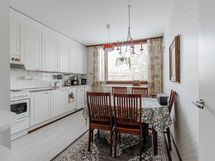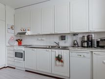 - Jääkaappipakastin, sähköliesi, liesituuletin, astianpesukone, irralliset kaapistot Pöytätalo ikkunan alla., kiinteät valaisimet.