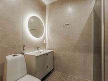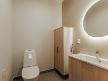- Pesutilojen varusteet: WC-istuin, suihku, lattialämmitys, peili, suihkuseinä ja allaskaappi. Erillisten WC:n lukumäärä: 1. Erillisen WC:n varusteet: WC-istuin, allaskaappi, peili, bidee-suihku ja lattialämmitys.