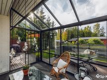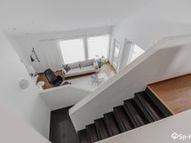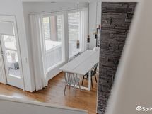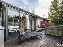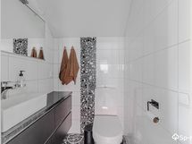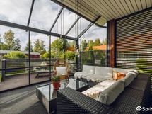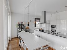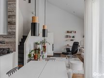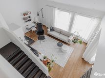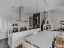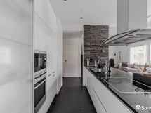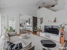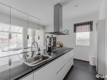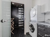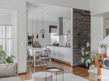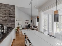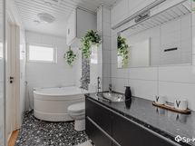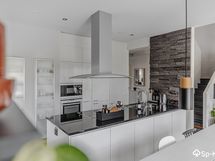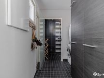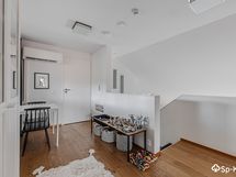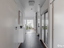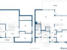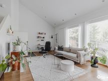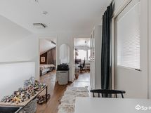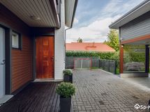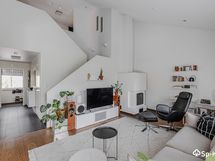 Tämän kodin asuintilat on jaettu onnistuneesti kahteen kerrokseen. Alakerrasta löytyvät olohuone, keittiö, yksi makuuhuone, kodinhoitotila, pesutilat sekä sauna ja erillinen wc. Valoisa olohuone on asunnon keskiössä toimien linkkinä ylä- ja alakerran välillä. Ruokailutila yhdistyy saumattomasti keittiöön ja olohuoneeseen, luoden avaran tilan yhteisille hetkille. Kodinhoitohuone on varustettuna omalla ulko-ovella. Yläkerrasta löytyvät vielä kaksi tilavaa makuuhuonetta, aulatila sekä erillinen wc varustettuna poreammeella. Olohuoneesta käynti takapihan lasitetulle terassialueelle.