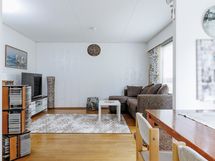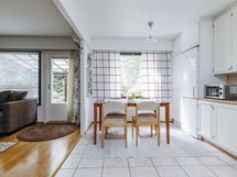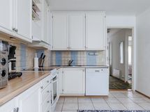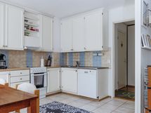 - Keittiön varusteet: Jääkaappipakastin, liesituuletin, astianpesukone ja liesi. Liesi: Keraaminen liesi. Työtason materiaali: Laminaatti.