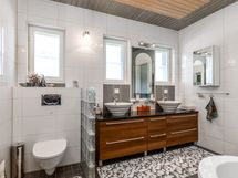 Useita kylpyhuone- ja wc-tiloja, ja kellarikerroksen spa-osasto kutsuu rentoutumaan: sähkö- ja infrapunasaunat, iso poreallas, viinikellari oleskelutiloineen, man cave biljardipöytineen, kuntosali sekä laadukkaat kodinhoitotilat. Lisäksi kiinteistöstä löytyy kokoustilat, lämmin hallitila autoille tai harrastevälineille sekä autokatospaikat kolmelle autolle. Erillinen asunto täydentää kokonaisuuden – se soveltuu esimerkiksi kahden sukupolven asumiseen tai vuokrakäyttöön.Kysy lisätietoja.