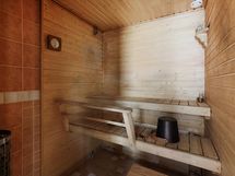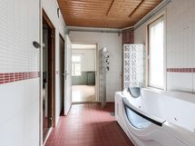 Sauna, sähkökiuas, puukiuas pihasaunassa, kylpyhuone, erillinen wc, suihku, suihkuseinä, amme, lattialämmitys, kiinteät valaisimet.