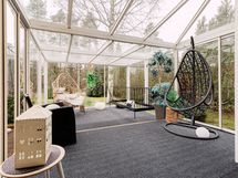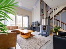 Lämmitysmuotona on miellyttävä lattialämmitys kaukolämmöllä. Varaava takka luo tunnelmaa ja tuo lämpöä keskeisellä sijainnilla olohuoneessa. Yläkerrassa huoneilman viilentää tarvittaessa kesähelteillä ilmalämpöpumppu. Ilmanvaihto on koneellinen lämmön talteenotolla.