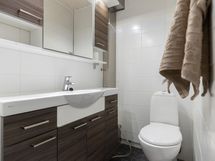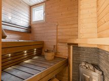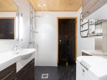 - Sauna, sähkökiuas, kylpyhuone, erillinen wc, peilikaappi, kaapit, allaskaappi, pesukoneliitäntä, lattialämmitys, kiinteät valaisimet.