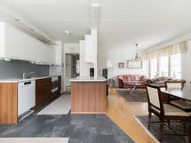- Jääkaappipakastin, erillisuuni, induktioliesi, liesituuletin, astianpesukone, kaapistot, kiinteät valaisimet.