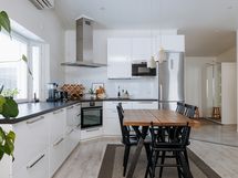 - Liesi: induktio. Työtasot: laminaatti. Kylmäsäilytys: jääkaappi/pakastin. Varustus: liesituuletin, mikroaaltouuni, astianpesukone.