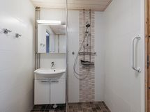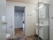 - Sauna, sähkökiuas, kylpyhuone, erillinen wc, suihku, suihkuseinä, peilit, allaskaappi, pesukoneliitäntä, lattialämmitys, kiinteät valaisimet.