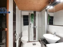 - Suihku, Pesukoneliitäntä, Mukavuuslattialämmitys, Tilaa pesukoneelle, Käsisuihku, Kaapisto, Allas, Suihkuseinä, WC-istuin, Peilikaappi
