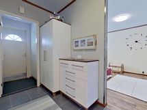 - Kauppaan ei kuulu: Eteisen korkea kaappi ja eteisen lipasto.