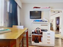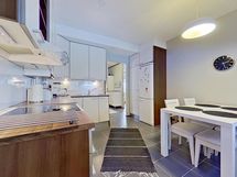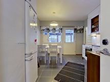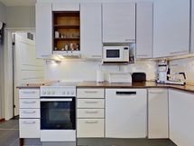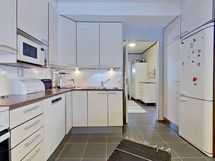 - Kylmäsäilytys: jääkaappi/pakastin. Varustus: liesituuletin / hormi. Keittiö uusittu vuonna 2012, jolloin osa yläkaapistojen rungoista jätetty hyväkuntoisina, mutta muutoin myös kaikki rungotkin uusittu sekä, ovet, vetimet, tasot, allas, hana ja välitila. Astianpesukone ja keraaminen liesi uusittu 2023.