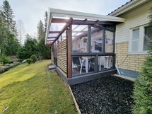 - 2016 takapihan terassi uusittu ja 2023 asennettu terassin seinäpleksit.