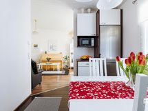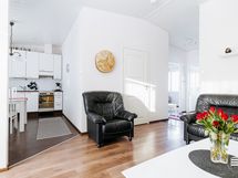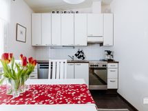 - Liesi: keraaminen. Kylmäsäilytys: jääkaappi/pakastin. Varustus: liesituuletin, astianpesukone, kiinteät valaisimet.