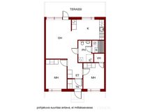 - Huoneiston levyinen katettu terassi suuntautuu länteen.