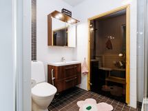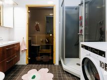 - Varustus: suihkukaappi, pesukoneliitäntä, wc-istuin, peilikaappi, kiinteät valaisimet.