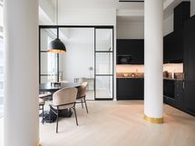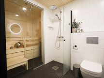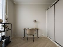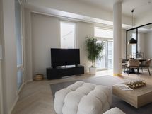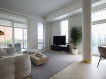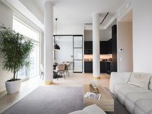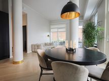 Tämä koti on suunniteltu vaativammankin asujan tarpeisiin ja huoneistossa on mm. normaalia korkeampi huonekorkeus. Tyylikkäitä yksityiskohtia tässä talossa riittää alakerran aulasta alkaen. Sama harkittu tyyli jatkuu huoneiston loppuun saakka mietityissä sisustusmateriaalivalinnoissa.