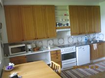 - Tilaa isolle ruokapöydälle, Paljon kaappitilaa, Paljon työskentelytilaa, Suuri tiskipöytä, Laminaattitasot, Terästasot, Astianpesukone, Sähköliesi, Keraaminen liesi, Liesituuletin, Jääkaappi, Pakastin, Jää-pakastinkaappi