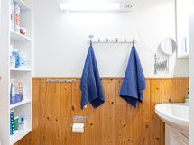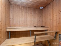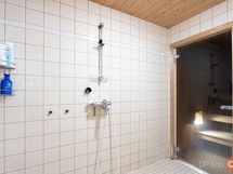 Sauna, sähkökiuas 2018, kylpyhuone, erillinen wc, suihku, peilikaappi, pesukoneliitäntä, lattialämmitys khh,ph, kiinteät valaisimet.
