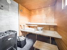 - Sauna, puukiuas, kylpyhuone, erillinen wc, suihku, peilit, peilikaappi, pesukoneliitäntä, lattialämmitys, kiinteät valaisimet.