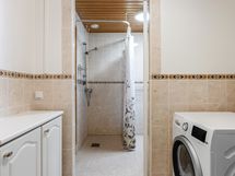 - Erillisen WC:n kuvaus: Lattiat laattaa, seinät maalia. Varustus: lattiakaivo, peilikaappi, bidee-suihku.