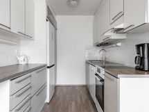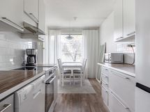 - Liesi: keraaminen. Työtasot: laminaatti. Kylmäsäilytys: jääkaappi/pakastin. Varustus: astianpesukone, kiinteät valaisimet, liesituuletin / suodatin.