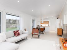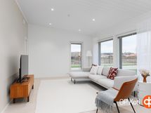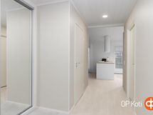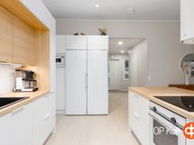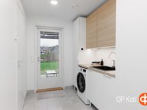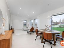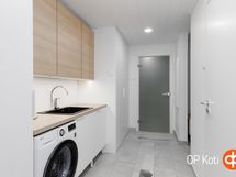 Nykyaikainen keittiö reiluine kaapistoineen, tasoineen ja ruokailutiloineen yhdistyy luontevasti olohuoneeseen, jossa on hyvin tilaa ja valo tulvii isoista ikkunoista. Makuuhuoneita on kolme ja isoimmassa muodostettu kätevä walk in closet säilytykseen. Kodinhoitohuone on tilava ja toimiva omalla sisäänkäynnillä, ehdottoman toimiva siis lemmikeille ja lapsille.
